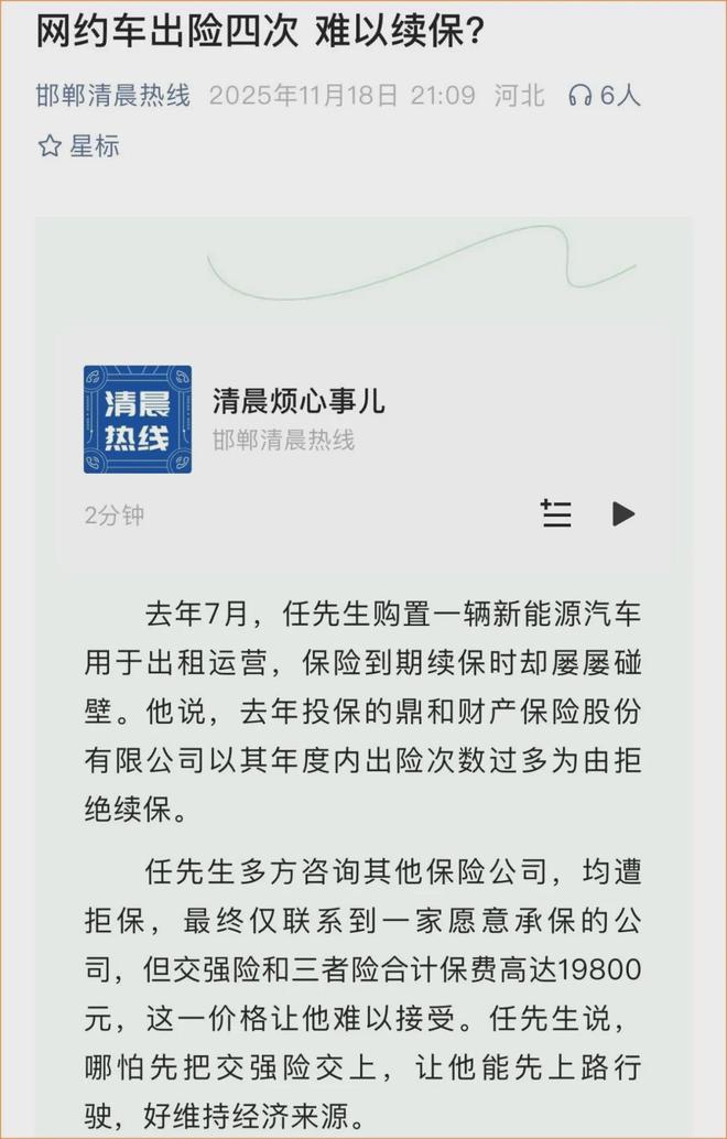 网约车焦点新闻(文/吴森)当你买了一辆车并用于网约车时,每年都要为保险操心不少。 11月18日,邯郸市“晨报热线”报道了一起典型案例。去年7月,任某为自己的线上出行服务购买了一辆新能源汽车,但因保险到期而屡屡遭遇阻碍。据任师傅介绍,去年购买该保险的鼎和财产保险有限公司以一年内事故次数过多(四次)为由,拒绝续保。任先生曾联系过多家保险公司,但都被拒绝了。最后,只剩下一家公司承保这项保险。但交强险和三人险的保费合计达1.98万元,这个数字让人难以接受。任师傅表示,即使交了强制过境保险,仍然可以开始上路行驶并维持您的财务状况。当“晨报热线”联系鼎和财产保险股份有限公司代表时,该代表回复:“我们无意拒绝参加交强险。”也许该员工的说法是不正确的。明天我会将计划的一个版本提供给客户。如果您不满意,我们将调整您的计划。目前,鼎和财产保险有限公司正在为任某提供保险计划,任某目前正在考虑该保险计划。即使没有发生意外,您的保险费也可能会增加。 11月17日,长沙网约车司机孙石先生告诉《网约车焦点》,他租了一辆帝豪新能源汽车(参数|照片)进行网约车。去年保费8400多元,今年保费涨至9704元。无事故一年后,我的保险费增加了1300多元。 “租赁公司告诉我,如果我不“不接受这个方案,我就自己去保险公司买保险。”儿子说,租赁购买的汽车驾照上有租赁公司的名字,根本不能投保。此前,《网约车焦点》联系了全国网约车司机,询问了他们今年的保费情况。来自杭州的应老师表示,他的特斯拉Y计划于2023年上市,今年的保费是台州陈G的AC艾安预计2023年7月上市,今年保费8980元,来自苏州的小鹏P5预计2021年7月上市,今年保费13000元,来自台州的王先生今年保费13000元。西安今年买的艾安今年的保费是11343元,这是目前车主抱怨的情况和保险公司的抱怨。损失。今年1月,《每日经济新闻》曾对新能源汽车投保难度和成本进行了详细报道。还透露,2024年新能源汽车保险技术损失将达57亿元,共认购车种2795种,赔付率大于100%的高损车种137种。乘用车方面,参保乘用车车型1654个,客车2982万辆。参保车辆超过1万辆的车型有301个,其中事故发生率大于100%的有99个。卡车方面,投保车型1141种,保障车辆123万辆。 55个类别的5000多辆车辆投保,其中38个类别的事故率超过100%。据该负责人介绍,新能源汽车补偿标准正在逐步提高。主要原因有四个。首先是维护成本ts很高。新能源汽车非常智能化、集成化。智能设备和配件的部分损坏一般需要完整维修和更换,但没有充分考虑维修的经济方面。不少新能源汽车、电动电池企业都采用了维修认证模式。各公司的维修体系相对封闭,社会化程度低,备件价格和维修工时相对昂贵。二是风险率高。新能源汽车具有能源成本低的优势,成为运营车队的首选。 2024年,新能源汽车保有量占比将比燃油汽车高10个百分点,使用强度较高。新能源汽车保有量相对年轻,35岁以下的车主比例高于燃油汽车。这也是14分高,且车主驾驶经验比较短。新能源汽车加速更快,噪音更小,行驶时更不易被外界注意到,更容易遇到危险。三是部分汽车保险的价格与车辆的使用性质不匹配。在投保新能源汽车时,存在兼职网络调度车辆作为国内车辆投保、兼职运营卡车作为非运营卡车投保的情况。但非运营车辆的平均保险价格仅为运营车辆的一半左右,造成车辆用途与保险价格的错配,导致保费优化不够。根据车型不同,如果该车作为家庭用车使用,补偿标准将处于正常水平。然而,由于其中许多模型用于在线拼车,因此它们可以作为保险家庭用车并支付较低的保费。因此,这些车型的整体补偿率大于100%。第四,有些车险的价格与车辆的风险不成正比。新能源汽车开发时间短、模型迭代快、保险数据积累不足,导致基准费率出现偏差。目前,新能源汽车保险独立价格系数的范围为[0.65,1.35]。这意味着您的保险公司可以将您的基本费率提高最多 35%,并减少至少 35%。与燃油车单一价格因素区间[0.5、1.5]相比,保险公司调整价格的空间有限,无法全面反映车辆的真实风险水平。