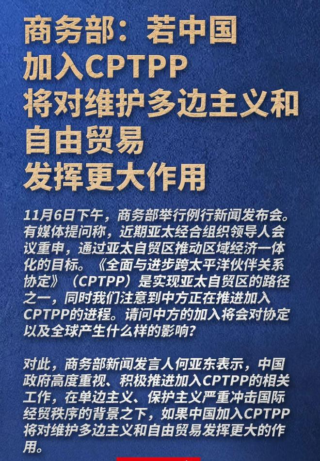这两天,我复习了一条以前看过很多次的留言。消息如下:我们重申坚定参与CPTPP组织,并声明加入CPTPP后,我们将为维护多边主义和自由贸易发挥更大作用。很多人可能和我有一样的好奇:“不是有一个国际贸易组织吗?”这个组织不是叫WTO吗?为什么要重新加入行业协会?世界贸易组织,又称世贸组织,成立于1995年1月1日,是独立于联合国的常设国际组织。它是具有法律地位的国际组织,总部设在瑞士日内瓦。世贸组织的原则包括非歧视原则、互惠原则、贸易自由化原则、透明原则、容忍例外原则和优惠原则。每个人都应该知道。日本人中国于2001年12月11日加入世贸组织。如果我们还记得那段日子,可以说,我们在加入世贸组织之前经历了许多磨难和困难。经过多年的艰难谈判,日本终于推翻了美国,加入了世贸组织。但说实话,说句让很多人不满意的话,自从我们加入世贸组织以来,世贸组织极大地促进和支持了我们的经济发展。这也是我国能够成为世界第二经济强国的根本原因。但近年来,由于各国态度转变、贸易保护主义蔓延以及一些国家不遵守世贸组织贸易规则,现有世贸组织已经瓦解、功能失调,并被越来越多的国家抛弃。如果硬要问我谁是世贸组织规则的最大破坏者,我会毫不犹豫地回答美国。所有责任都应由曼联承担国家。如今世贸组织解体,世界各国开始建立新的贸易组织,CPTPP突然走红。该贸易组织的实力依然良好,英国现已成为 CPTPP 组织的成员。如果欧盟联合加入CPTPP,美国重新加入,GPTPP组织的GDP产出将达到全球总产出的60%,成为全球最大、最重要的经济体。 CPTPP到底是什么? 《全面且进步的跨太平洋伙伴关系协定》是继世贸组织之后的世界第二大自由贸易组织。然而,它的繁荣是清晰可见的,并且肯定会取代WTO。该组织目前有12个成员国:澳大利亚、加拿大、墨西哥、日本、越南、新加坡、新西兰、秘鲁、智利、文莱、马来西亚和英国。如果27个欧盟国家加入,其规模将是空前的,很容易规模超过世贸组织。因此,我个人对我国要求积极参与CPTPP贸易组织有三点小看法。首先,你想加入一个别人创建的贸易组织,所以这可能和你加入世贸组织时一样。访问有不同的要求、不同的审查、不同的承诺和不同的规则。但我认为这很正常,俗话说。家庭有规则、结构和规定。这些都是正常的。然而,WTO规则似乎与CPTPP规则有所不同。一是承诺制,二是准入制。总之,一个知道可以先添加再修改,而另一个则必须满足要求才可以添加。其次,全球保护主义抬头,一些国家人为设置贸易壁垒。作为世界第二大经济体和出口导向型经济体,我们积极寻求加入CPTPP。没有问题。话虽如此,毫无疑问,如果我们真正加入CPTPP,将为这个贸易组织增添巨大的力量和影响力。第三,我看到网上有人说,如果想加入CPTPP组织,要求似乎很严格。例如,加入需要其他成员国同意、贸易必须自由、工人必须得到有效保护、模式和制度有一定要求等。我想这应该是一件好事,而不是一件坏事。如果你想整合,你需要完全整合。我不会说或写任何其他东西。我真诚地希望大家能够加入CPTPP组织,这对大家都有利。最后我想请问广大网友:你们认为我们很快就能加入CPTPP组织吗?快来评论区了解一下吧!